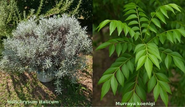 | Característica | Helichrysum italicum (Planta do Curry) | Murraya koenigii (Árvore do Curry) |